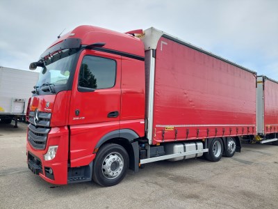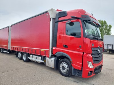 Ausstattung: Třístranná shrnovací konstrukce, přizvedávání střechy, zadní vrata, průjezdná souprava, děrovaný obvodový profil, hlídač jízdních pruhů, mirror cam, 1. náprava pneumatiky Leao, 2. a 3. náprava pneumatiky Jinyu. CENA ZA SOUPRAVU (cena vč. přívěsu Wielton PC2K, ID: 25071)