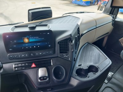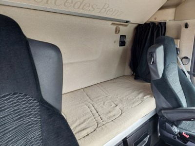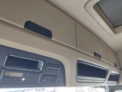 Fahrehausinnen: Fernverkehrfahrerhaus, Klimaautomatik, Anzahl der Sitze: 2, Anzahl der Betten: 2, elektrisches Schiebedach, elektrische Fensterheber, elektrisch betriebene Außenspiegel mit Heizung, Zentralverriegelung mit Fernbedienung, Kühlschrank, Standheizung, Wegfahrsperre, Radio, digitalen Fahrtenschreiber, komfort Fahrersitz Außen: Sonnenblende, Dachspoiler, Nebelscheinwerfer, Farbe: rote