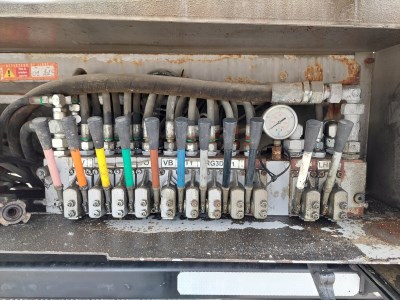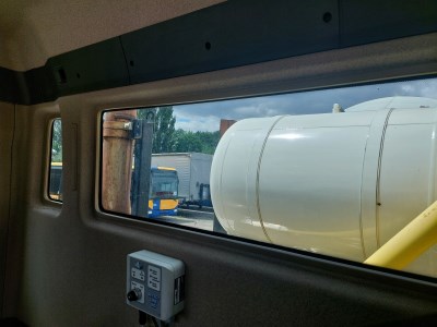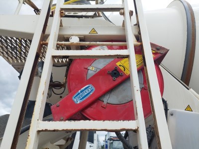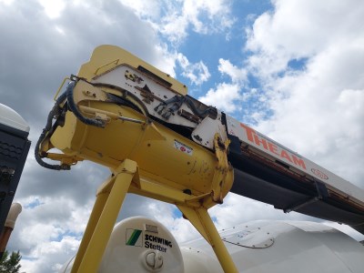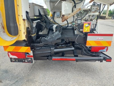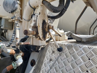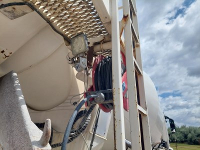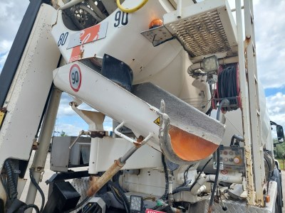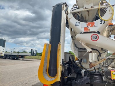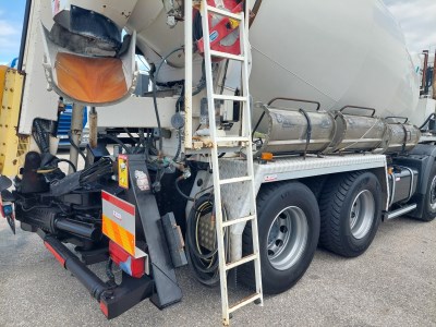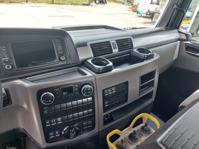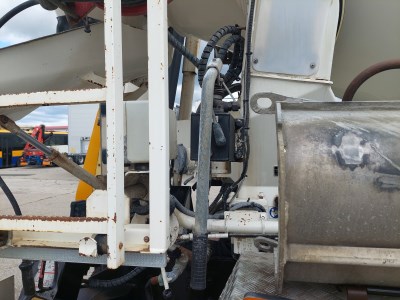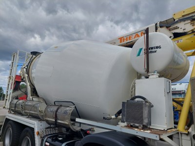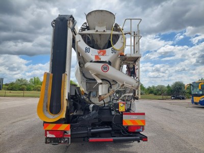 Ausstattung: Domíchávač Stetter AM 8 FHCBL, objem 8000 l, nádrž na vodu 500 l, přepravní pás Rotatheam T3D16, délka přepravního pásu od 6,3 m do 15,8 m, šířka pásu 360 mm, maximální rychlost vypouštění 70 m3/h, otáčení pásu 310°, maximální výška vypouštění 7 m, zadní okna v kabině, skříňka na nářadí