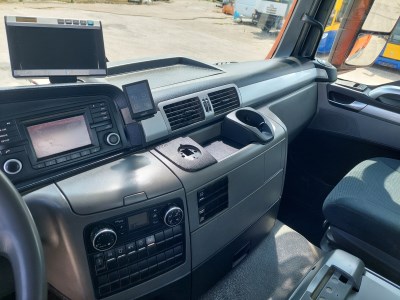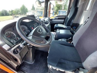 Fahrehausinnen: Nahverkerfahrerhaus, Klimaautomatik, Anzahl der Sitze: 2, mechanische Schiebedach, elektrische Fensterheber, elektrisch betriebene Außenspiegel mit Heizung, Zentralverriegelung, Aufbewahrungsbox, Wegfahrsperre, Radio, digitalen Fahrtenschreiber, komfort Fahrersitz Außen: Sonnenblende, Nebelscheinwerfer, Warnleuchten: 2 x , Farbe: orange