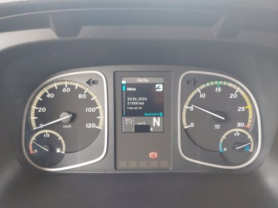 Fahrehausinnen: Nahverkerfahrerhaus, Klimaanlage, Anzahl der Sitze: 2, mechanische Schiebedach, elektrische Fensterheber, elektrisch betriebene Außenspiegel mit Heizung, Zentralverriegelung mit Fernbedienung, Aufbewahrungsbox, Radio mit CD player, digitalen Fahrtenschreiber, komfort Fahrersitz mit Heizung Außen: Sonnenblende, Dachspoiler, Farbe: blau