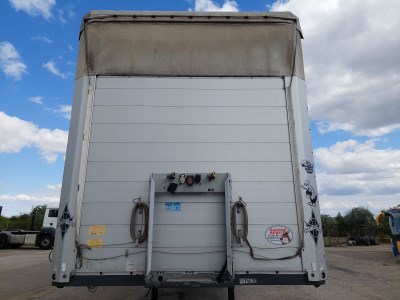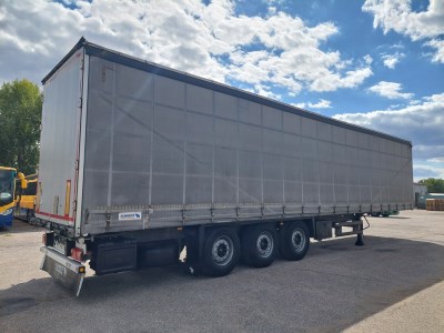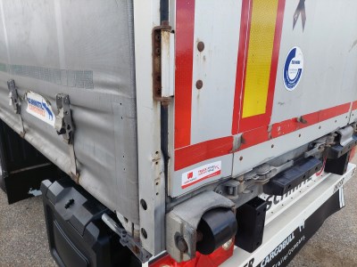 Ausstattung: Třístranná shrnovací konstrukce, zadní vrata, 3 x skříňka na nářadí, 2 x držák rezervy, nápravy Schmitz, provedení XL