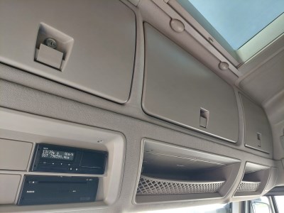 Fahrehausinnen: Fernverkehrfahrerhaus, Klimaautomatik, Anzahl der Sitze: 2, Anzahl der Betten: 2, elektrisches Schiebedach, elektrische Fensterheber, elektrisch betriebene Außenspiegel mit Heizung, Kühlschrank, Standheizung, Radio, digitalen Fahrtenschreiber, komfort Fahrersitz Außen: Sonnenblende, dach und seite Spoiler, Nebel und Zusatzscheinwerfern, Farbe: weiß