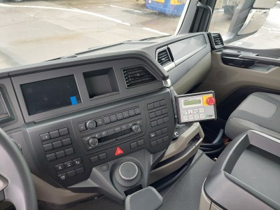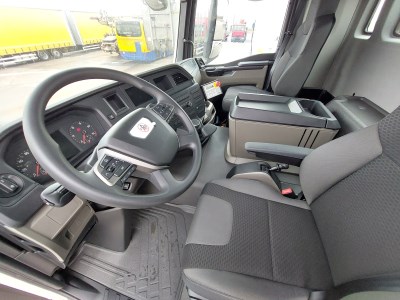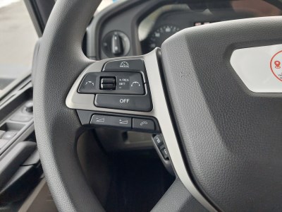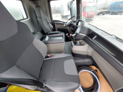 Fahrehausinnen: Nahverkerfahrerhaus, Klimaautomatik, Anzahl der Sitze: 2, mechanische Schiebedach, elektrische Fensterheber, elektrisch betriebene Außenspiegel mit Heizung, Zentralverriegelung, Aufbewahrungsbox, getönte Scheiben, Wegfahrsperre, Radio mit Navigation, digitalen Fahrtenschreiber, komfort Fahrersitz mit Heizung Außen: Sonnenblende, Farbe: weiß, Farbe 2: weiß
