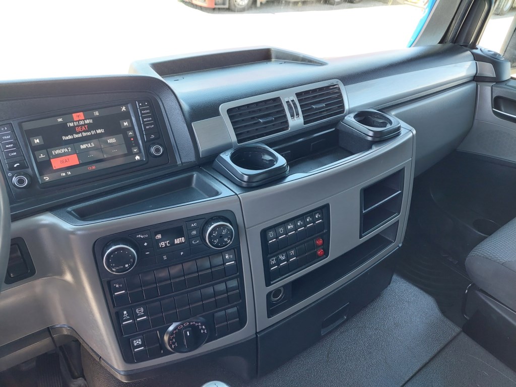 Interior: long distance cabin, automatic air conditioning, Number of Seats: 2, electrically opened sunroof, electric windows, electric mirrors with heating, central locking, refrigerator, independent heating, immobilizer, radio with navigation, digital tachograph, comfortable driver's seat Exterior: sun shield, fog lamps, warning lights: 2 x , color: blue
