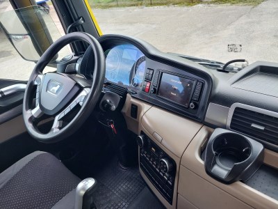 Interior: day cab, automatic air conditioning, Number of Seats: 2, mechanical opening sunroof, electric windows, electric mirrors with heating, central locking, refrigerator, independent heating, tinted glass, immobilizer, radio with navigation, digital tachograph, comfortable driver seat heated Exterior: sun shield, fog lamps, warning lights: 2 x , color: yellow