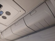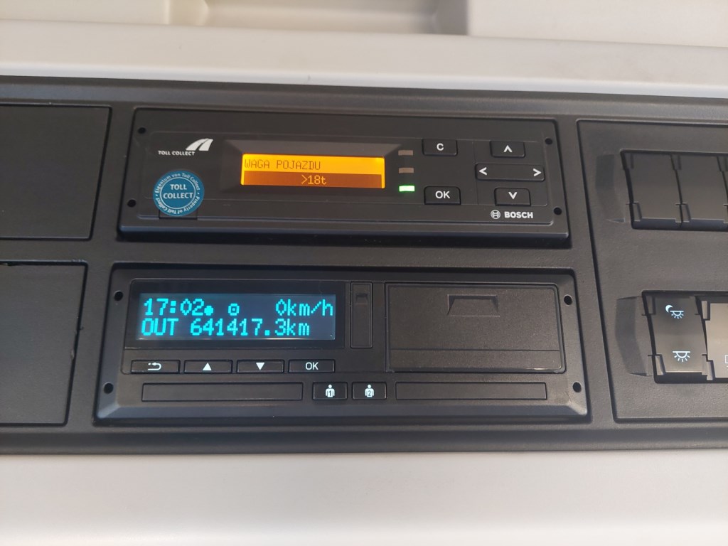 Interiér: dálková kabina, automatická klimatizace, počet sedadel: 2, počet lůžek: 2, bez střešního okna, okna ovládaná elektricky, zpětná zrcátka ovládaná elektricky s vyhříváním, centrální zamykání, lednička, nezávislé topení, rádio s navigací, digitální tachograf, komfortní sedačka řidiče