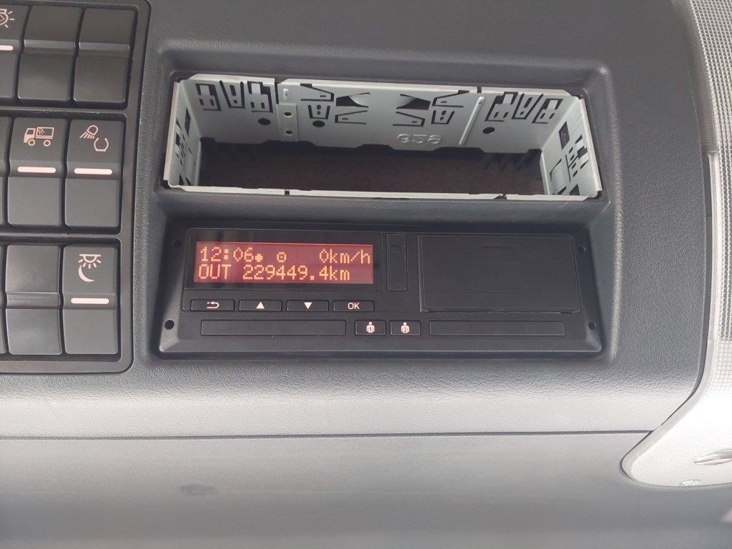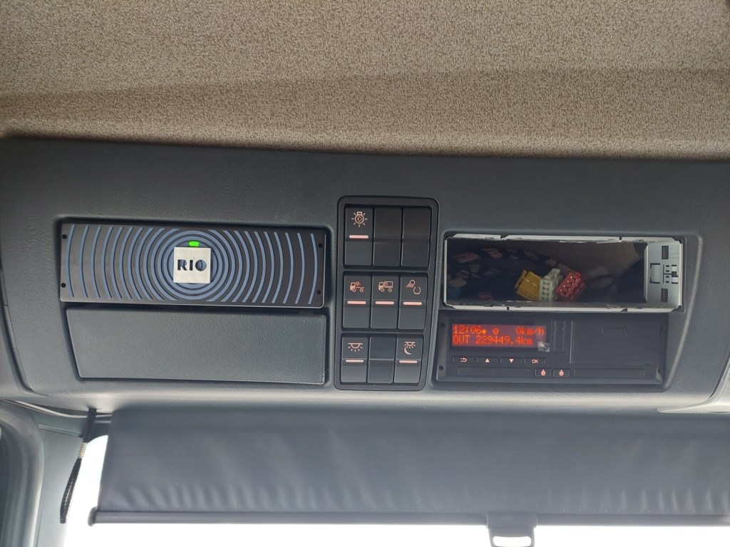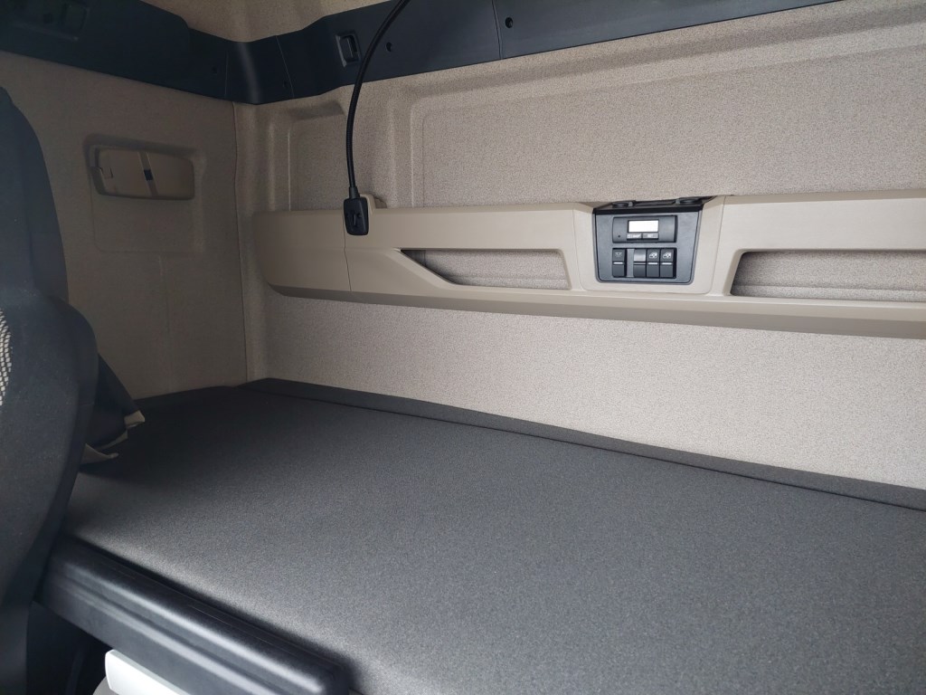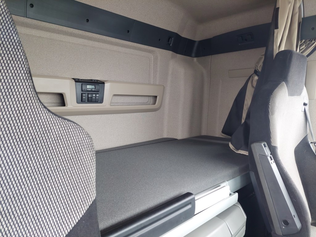 Interiér: dálková kabina, automatická klimatizace, počet sedadel: 2, počet lůžek: 1, mechanicky otevírané střešní okno, okna ovládaná elektricky, zpětná zrcátka ovládaná elektricky s vyhříváním, centrální zamykání s dálkovým ovládáním, lednička, nezávislé topení, imobilizér, rádio s navigací, digitální tachograf, komfortní sedačka řidiče vyhřívaná