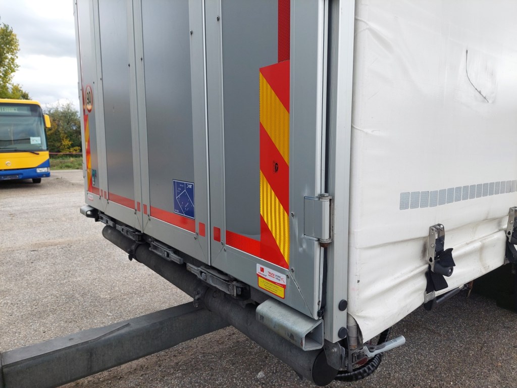 Třístranná shrnovací konstrukce, přizvedávání střechy, průjezdná souprava, skříňka na nářadí. Vozidlo v prodeji s přívěsem č. 25155 - GNIOTPOL G-4080, 30.06.2022, ABS, třístranná shrnovací konstrukce, přizvedávání střechy, celková hmotnost: 11 000 kg, nosnost: 7 200 kg. Rozměry ložné plochy (D x Š x V): 7710 x 2480 x 3000 mm. Souprava 38 palet. Nový typ tachografu. CENA SOUPRAVY: 80.000 EUR + DPH