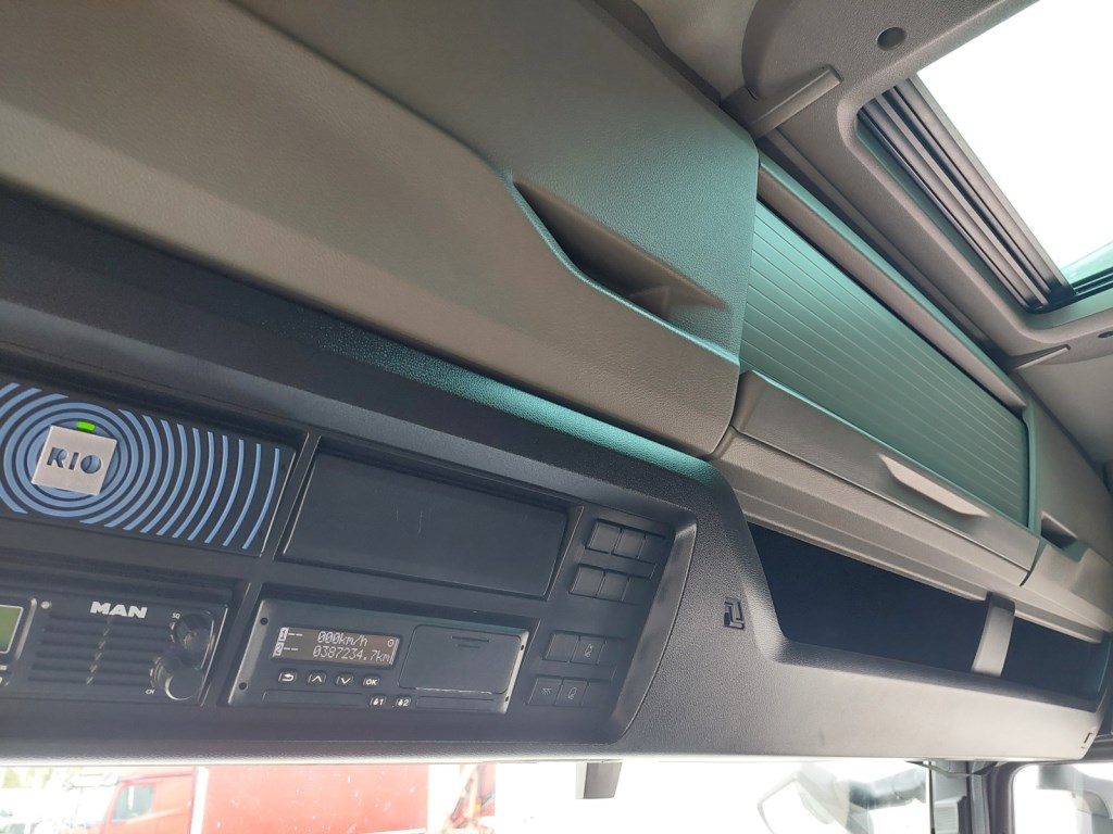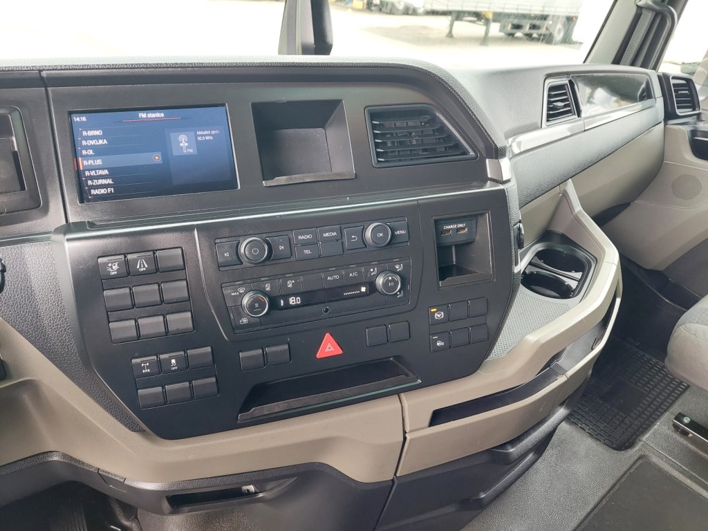 Interiér: dálková kabina, automatická klimatizace, počet sedadel: 2, počet lůžek: 2, elektricky otevírané střešní okno, okna ovládaná elektricky, zpětná zrcátka ovládaná elektricky s vyhříváním, centrální zamykání, lednička, nezávislé topení, rádio, digitální tachograf, komfortní sedačka řidiče vyhřívaná