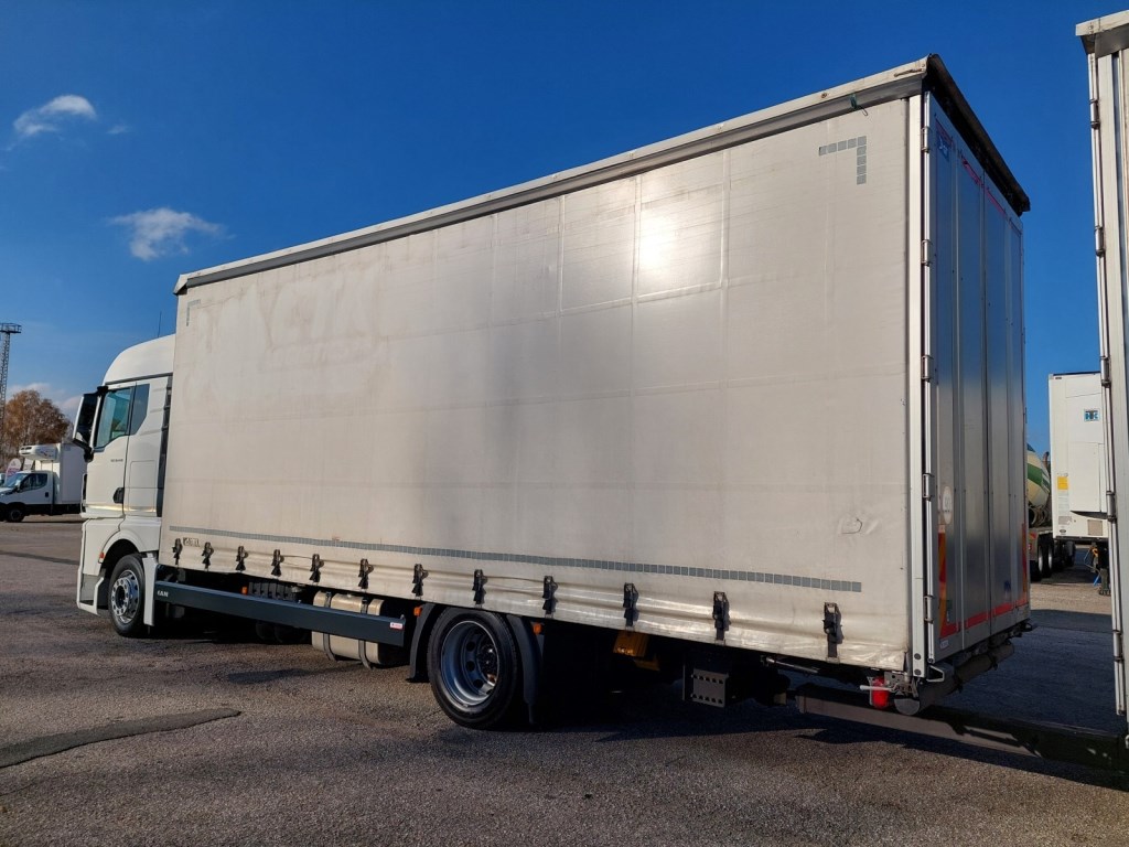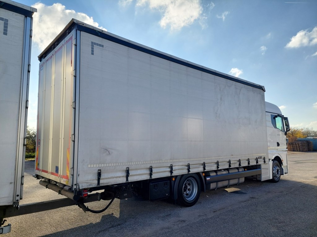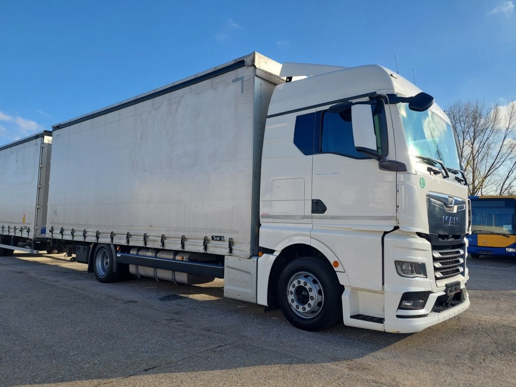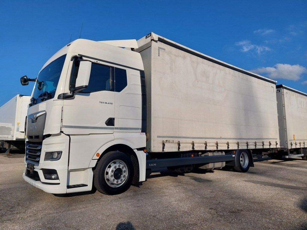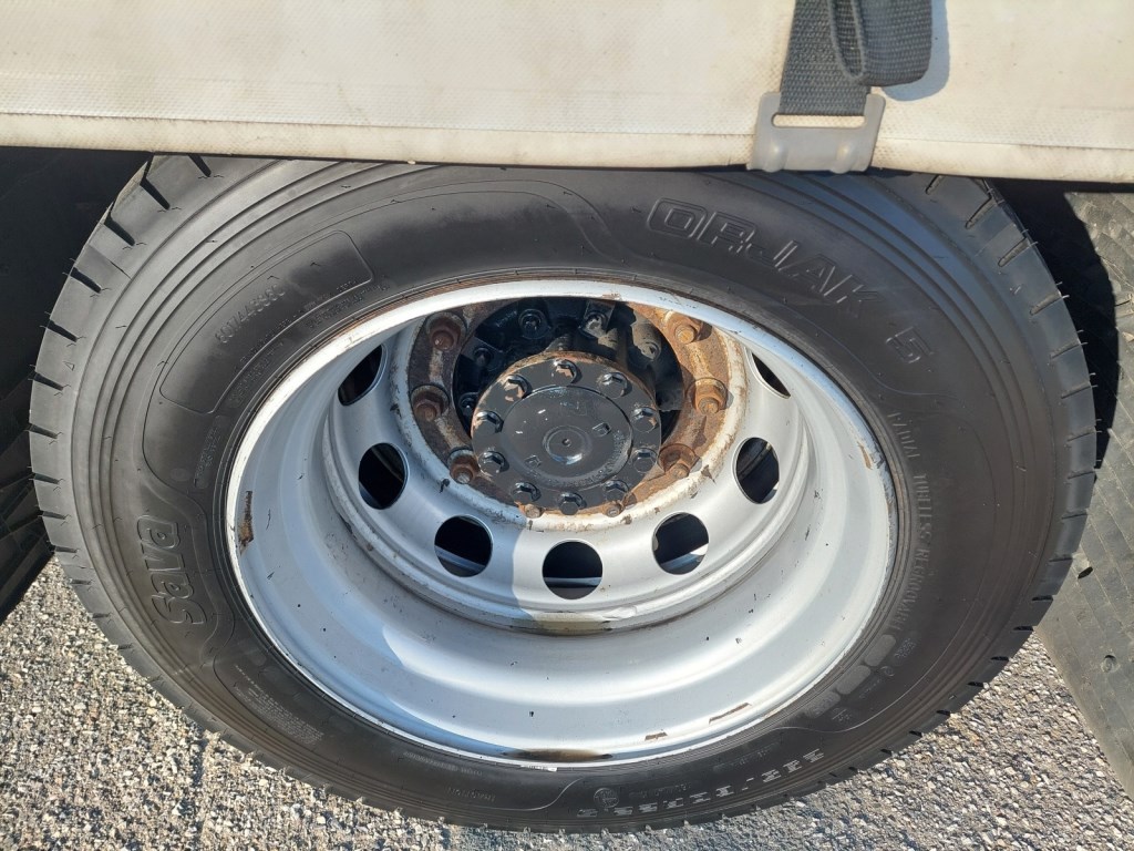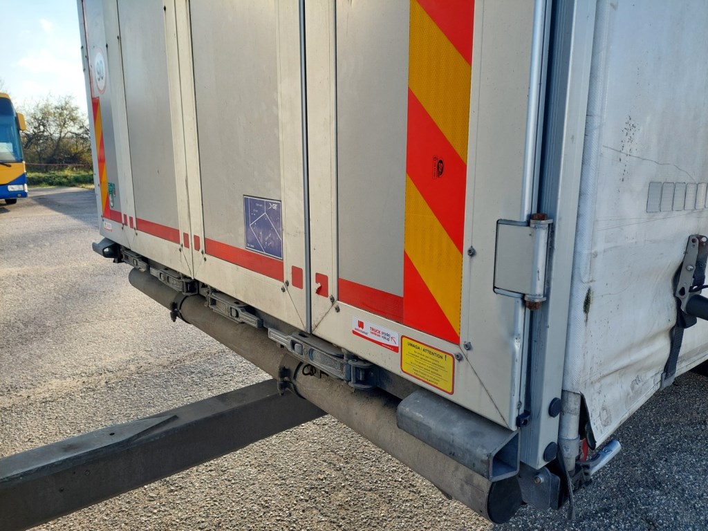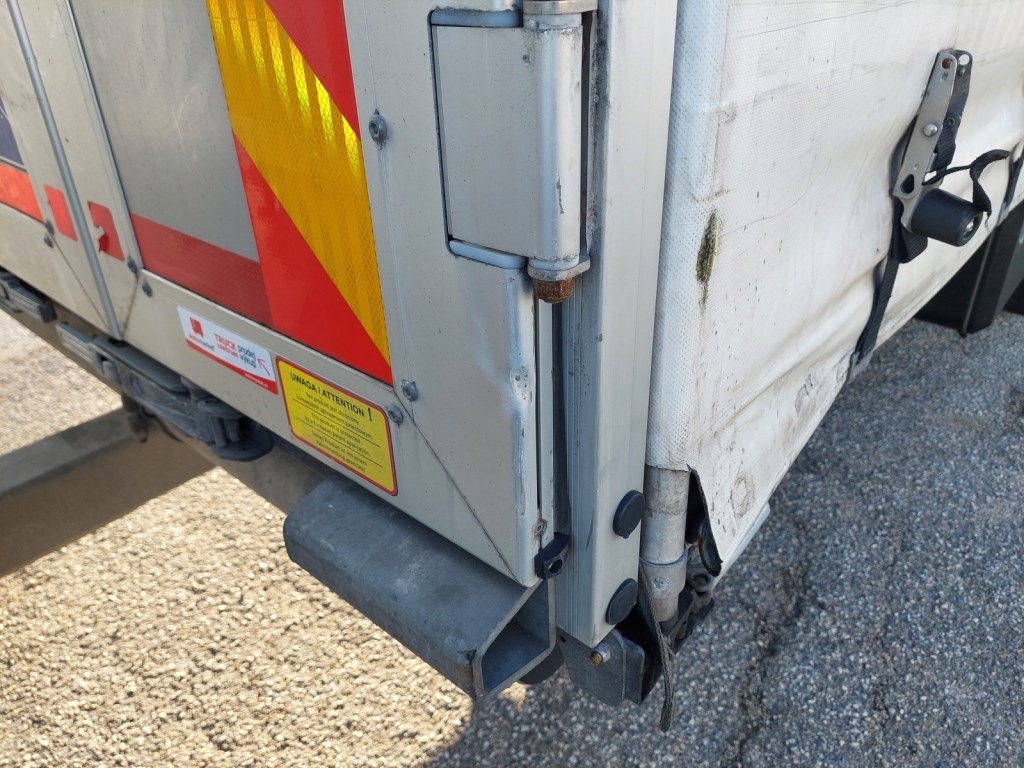 Vozidlo v prodeji s přívěsem č. 25172 - GNIOTPOL G-4080, 28. 10. 2021, ABS, třístranná shrnovací konstrukce, přizvedávání střechy, celková hmotnost: 11 000 kg, nosnost: 7 200 kg. Rozměry ložné plochy (D x Š x V): 7700 x 2480 x 3010 mm.
