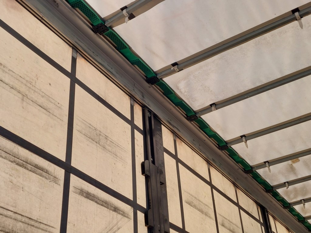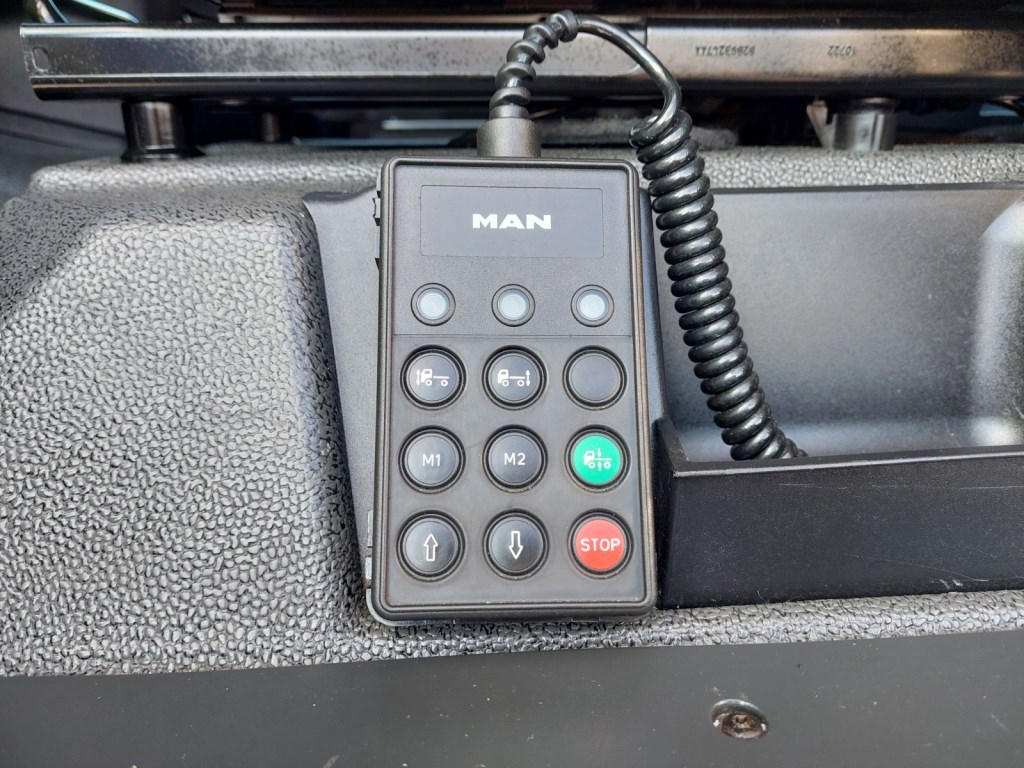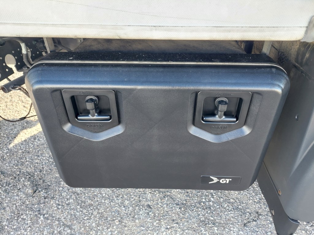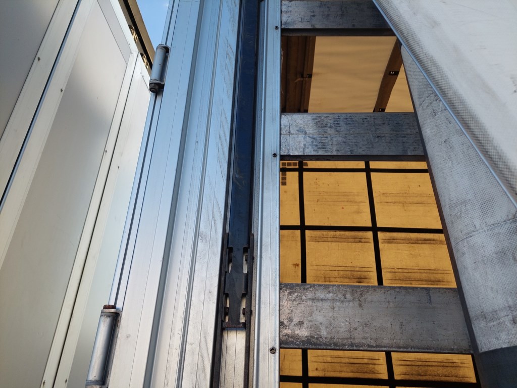 Třístranná shrnovací konstrukce, přizvedávání střechy, průjezdná souprava, skříňka na nářadí.