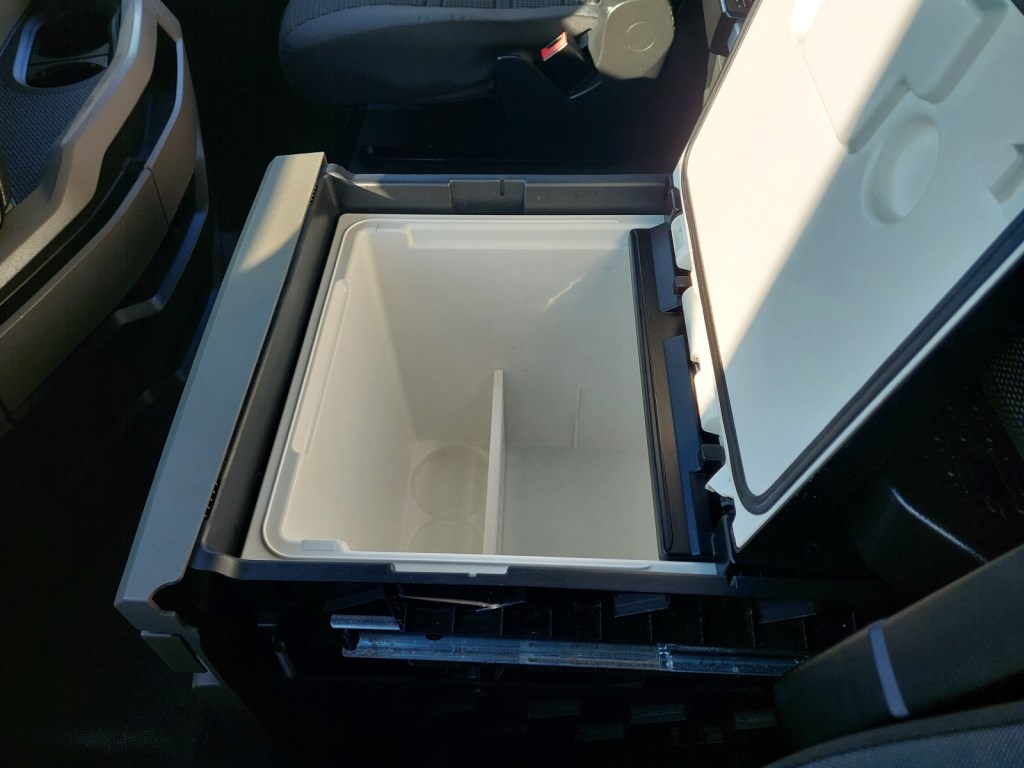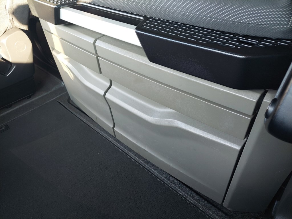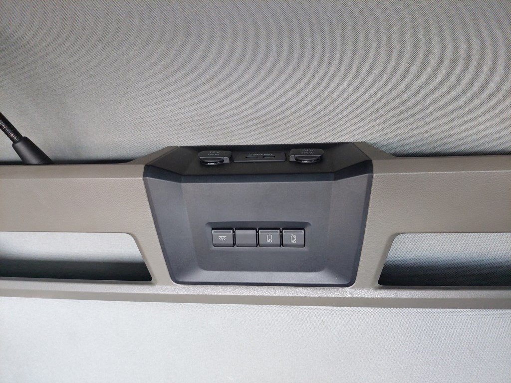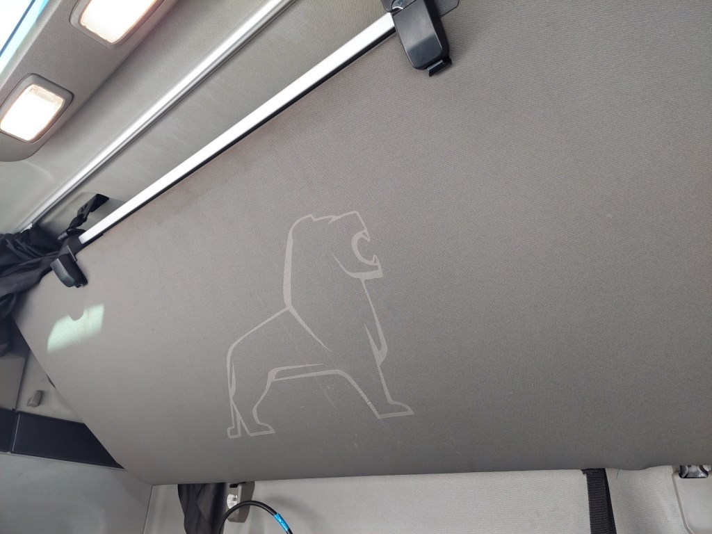 Třístranná shrnovací konstrukce, přizvedávání střechy, průjezdná souprava, skříňka na nářadí.