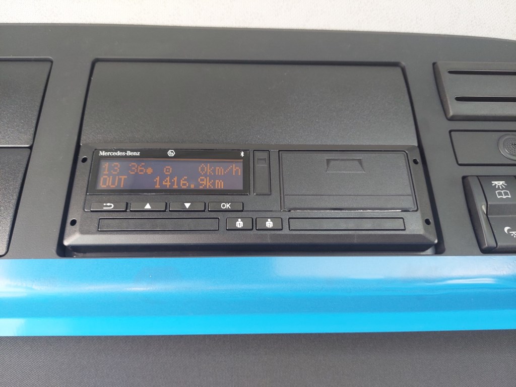 Interiér: denní kabina, automatická klimatizace, počet sedadel: 2, mechanicky otevírané střešní okno, okna ovládaná elektricky, zpětná zrcátka ovládaná elektricky, centrální zamykání, lednička, tónovaná skla, imobilizér, rádio s navigací, digitální tachograf, komfortní sedačka řidiče vyhřívaná