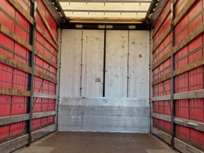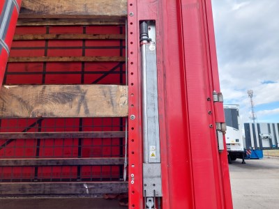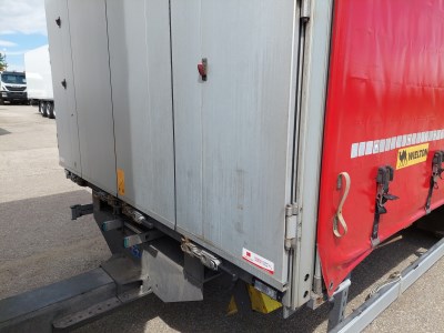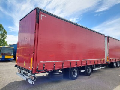 Vybavení: Tandemový přívěs, třístranná shrnovací konstrukce, přizvedávání střechy, průjezdná souprava, přední a zadní vrata, nápravy BPW, 2 x skříňka na nářadí, sud na vodu, 2 x držák rezerv, ložná délka k přednímu sklápěcímu čelu 8.060 mm, průměr oka oje 50 mm