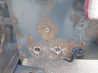 Nefunkční uzávěrka diferenciálu, poškozené sedadlo řidiče, poškozená zábrana proti podjetí, prasklý přední nárazník, koroze držáků zadních blatníků