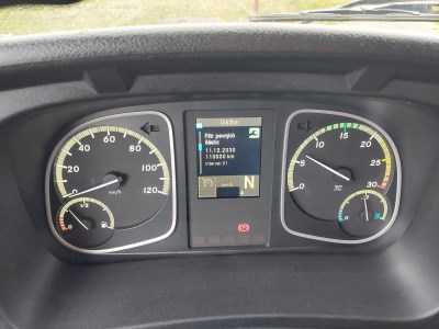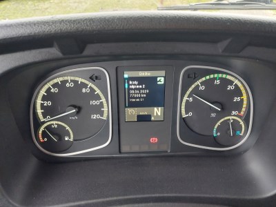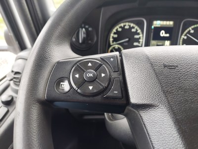 Interiér: denní kabina, mechanická klimatizace, počet sedadel: 3, okna ovládaná elektricky, zpětná zrcátka ovládaná elektricky s vyhříváním, rádio, digitální tachograf, komfortní sedačka řidiče Exteriér: barva: bílá