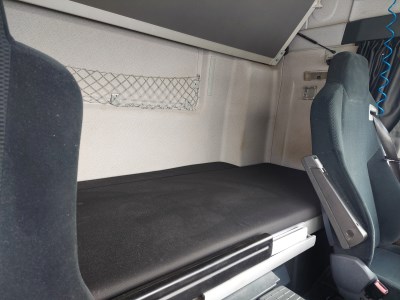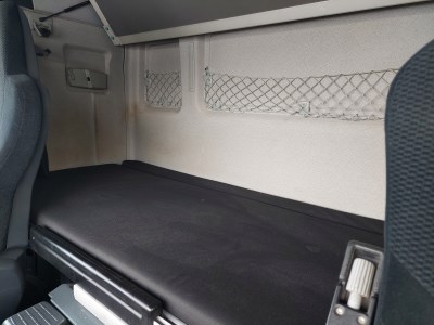 Interiér: dálková kabina, automatická klimatizace, počet sedadel: 2, počet lůžek: 2, mechanicky otevírané střešní okno, okna ovládaná elektricky, zpětná zrcátka ovládaná elektricky s vyhříváním, centrální zamykání, lednička, nezávislé topení, imobilizér, rádio s CD přehrávačem, digitální tachograf, komfortní sedačka řidiče Exteriér: střešní a boční spoilery, mlhovky, barva: bílá