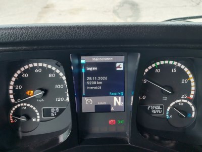 Interiér: dálková kabina, automatická klimatizace, počet sedadel: 2, počet lůžek: 1, mechanicky otevírané střešní okno, okna ovládaná elektricky, zpětná zrcátka ovládaná elektricky s vyhříváním, centrální zamykání s dálkovým ovládáním, lednička, nezávislé topení, imobilizér, rádio, digitální tachograf, komfortní sedačka řidiče Exteriér: sluneční clona, barva: žlutá