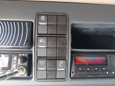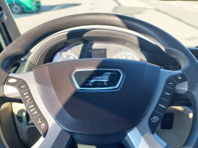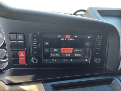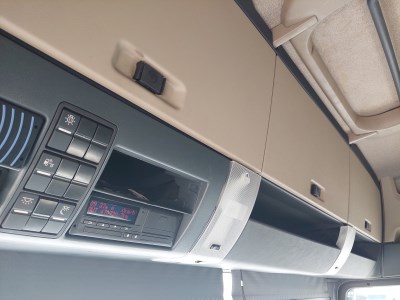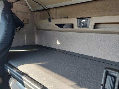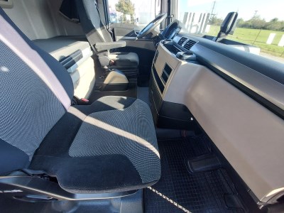 Interiér: dálková kabina, automatická klimatizace, počet sedadel: 2, počet lůžek: 2, mechanicky otevírané střešní okno, okna ovládaná elektricky, zpětná zrcátka ovládaná elektricky s vyhříváním, centrální zamykání, lednička, nezávislé topení, rádio s navigací, digitální tachograf, komfortní sedačka řidiče vyhřívaná Exteriér: střešní a boční spoilery, mlhovky, barva: bílá