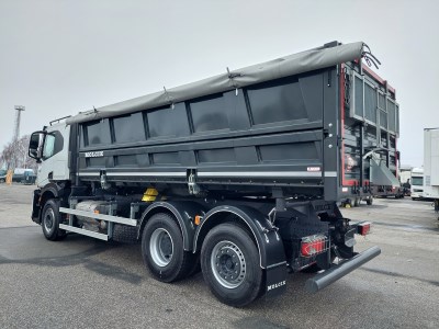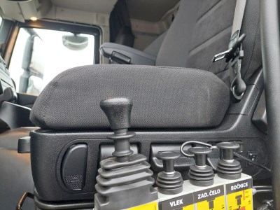 Vybavení: Hlídač jízdních pruhů, hydraulika pro přívěs, 3. náprava říditelná, rolovací plachta