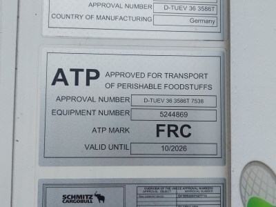 Agregát Thermo King SLXi 300, platnost ATP do 10/2026, nástavba provedení XL, teploměr, diesel/elektro, celkové hodiny 6737 h, celkové hodiny motoru 6647 mth, certificate ATP, 2 x držák rezervy, nápravy Schmitz, box na palety, zámek zadních vrat, skříňka na nářadíStav vozidla: