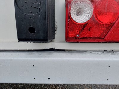 Provozní oděrky, ohnutý držák zadních světel, poškozené dorazy k rampě