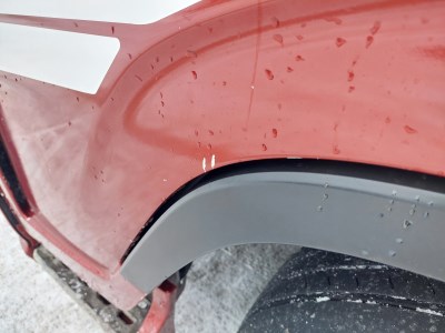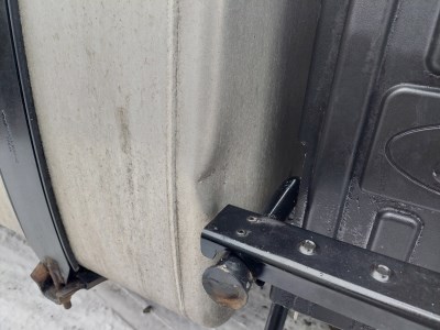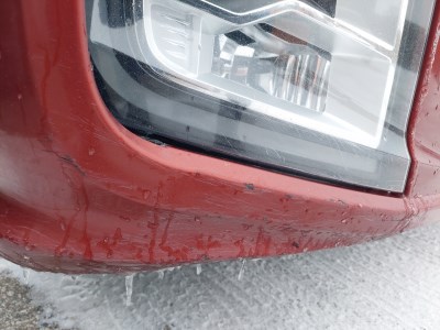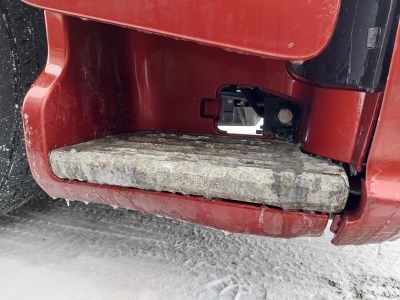 Odřený přední nárazník, provozní oděrky, nefunkční lednice, nefunkční elektrické sklápění kabiny