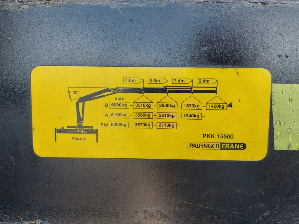 Vybavení: | HNJ Palfinger PK 15.500 diagram: 4 m - 3510 kg, 5,5 m - 2530 kg, 7,4 m - 1830 kg, 9,4 m - 1420 kg |