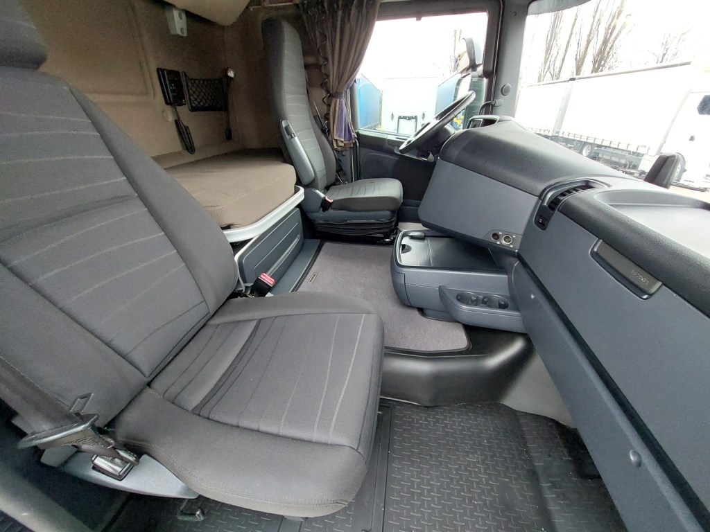 Interiér: dálková kabina, automatická klimatizace, počet sedadel: 2, počet lůžek: 2, mechanicky otevírané střešní okno, okna ovládaná elektricky, zpětná zrcátka ovládaná elektricky s vyhříváním, lednička, nezávislé topení, rádio, digitální tachograf, komfortní sedačka řidiče Exteriér: sluneční clona, kompletní sada spoilerů, mlhovky, barva: bílá