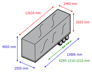 | Ložná plocha (dxšxv): | 13620 x 2480 x 3000 mm |