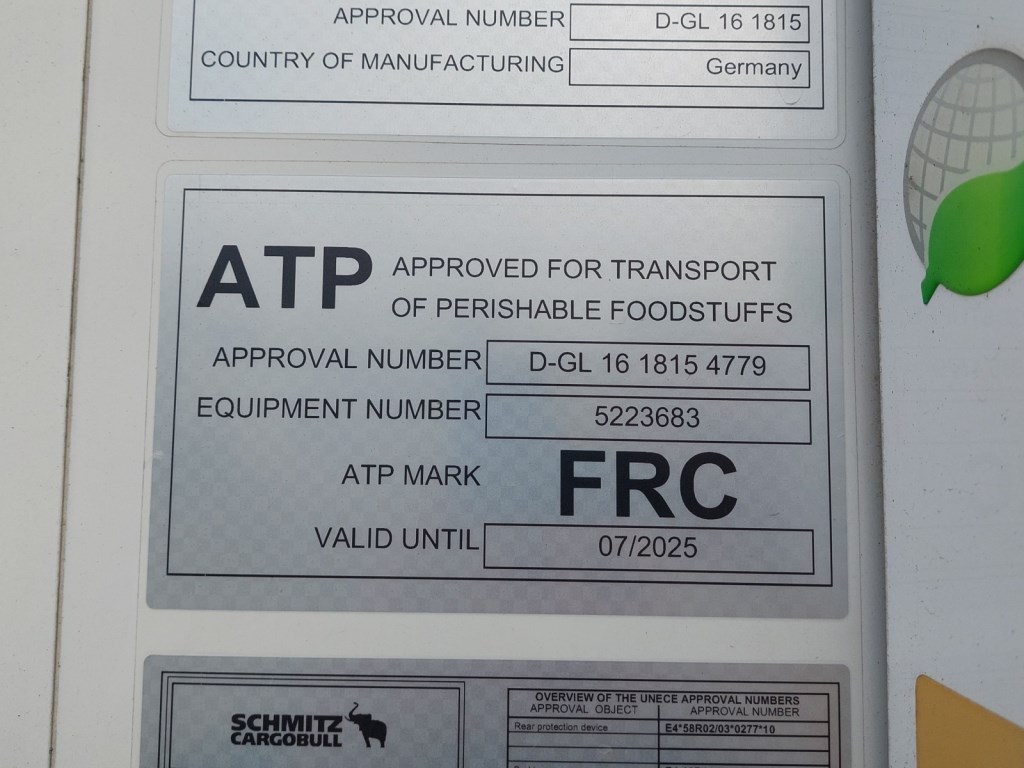 Agregát Thermo King SLXi 300, platnost ATP do 5/2028, nástavba provedení XL, teploměr, diesel/elektro, celkové hodiny 8976 h, celkové hodiny motoru 8938 mth, certificate ATP, 2 x držák rezervy, nápravy Schmitz, box na palety, zámek zadních vrat, skříňka na nářadí