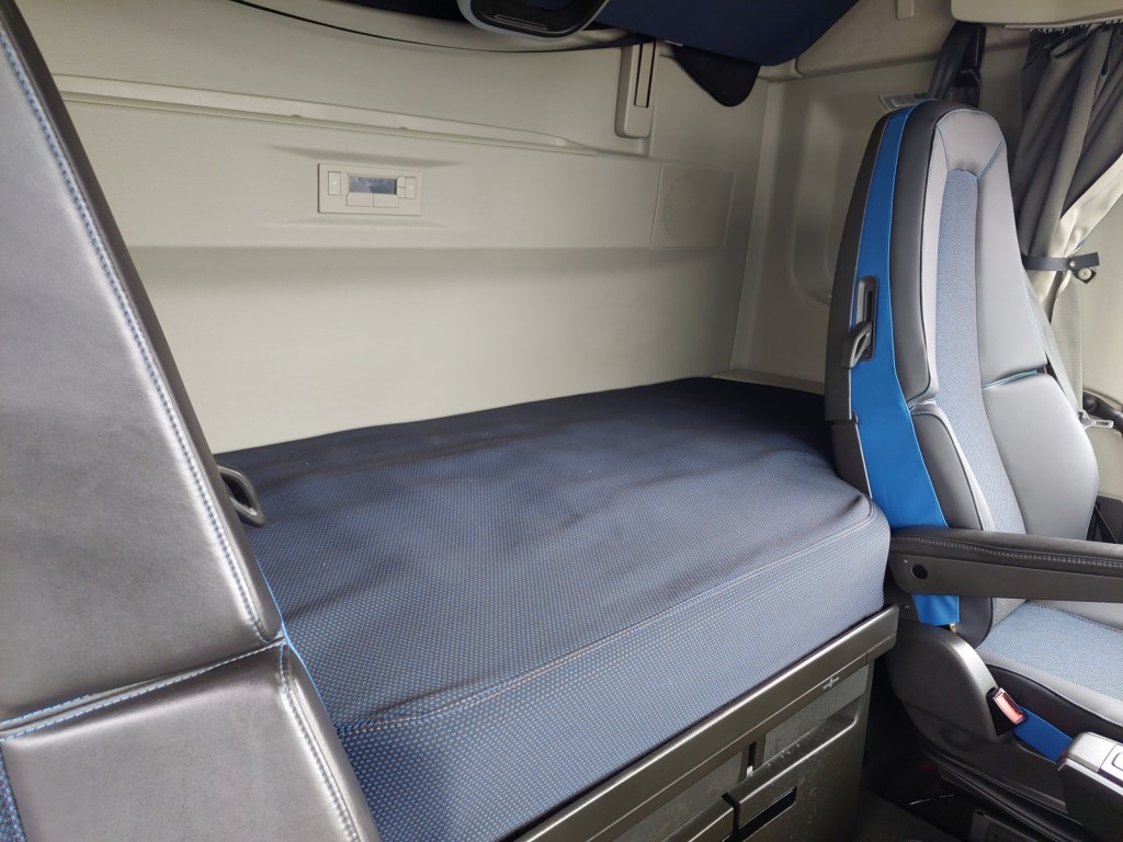 Interiér: dálková kabina, automatická klimatizace, počet sedadel: 2, počet lůžek: 2, elektricky otevírané střešní okno, okna ovládaná elektricky, zpětná zrcátka ovládaná elektricky s vyhříváním, centrální zamykání s dálkovým ovládáním, lednička, nezávislé topení, imobilizér, rádio, digitální tachograf, komfortní sedačka řidiče